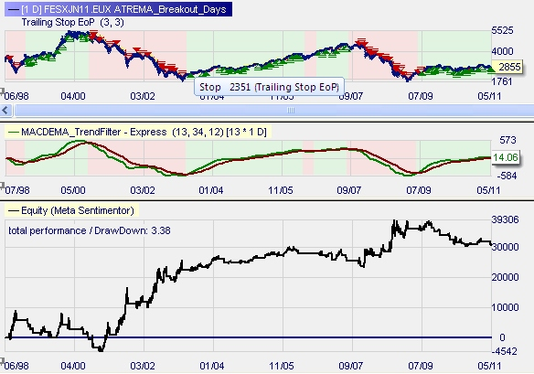 7.6. Here is the result of the approach from a long term backtesting. Combined with trend-filter, here a MACD, it brings in decent results.