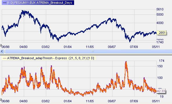 At the next pages we made use of volatility breakouts in strategies of swing- and a daytrading where they are quite appealing. The we use indicator with stochastics on ATR and/or Standard Deviation.